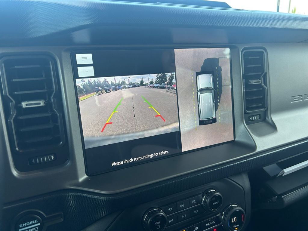 Elevate your driving experience with the premium features of the Bronco Outer Banks. The 12-inch LCD touchscreen with swipe capability puts a wealth of connectivity and information at your fingertips, while the 360-degree camera and front parking sensors make navigating tight spaces a breeze. The additional sound deadening and Information on Demand panel further enhance the refined and sophisticated cabin.