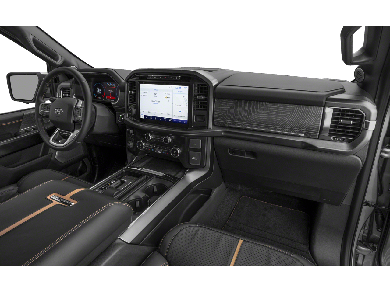 The interior of this Platinum model is a true sanctuary, featuring premium leather seating, heated and ventilated front seats, and a heated steering wheel. The SYNC 4 infotainment system with enhanced voice recognition keeps you connected and in control.