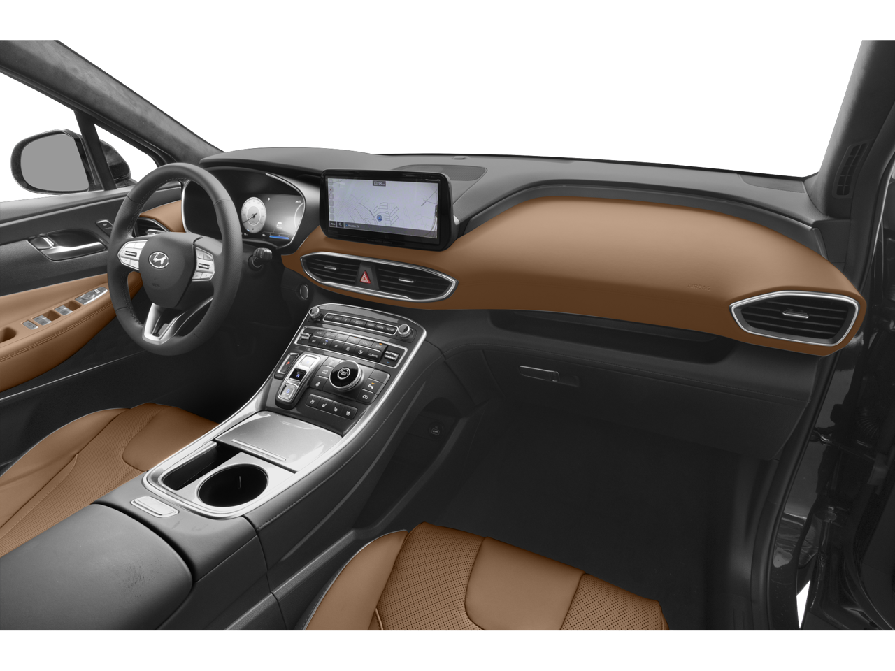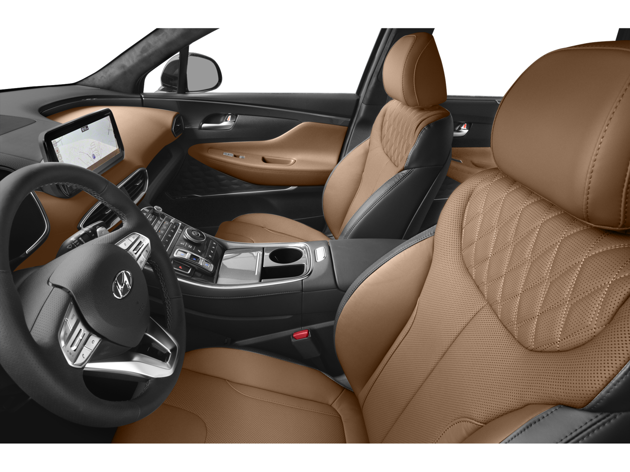 Indulge in the ultimate comfort and convenience with the Santa Fe Calligraphy's premium interior features. Sink into the Quilted Premium Nappa Leather-trimmed seats, which offer both heating and ventilation for year-round comfort. The power driver's seat with memory settings ensures a personalized fit, while the heated steering wheel and dual-zone automatic climate control create a sanctuary of relaxation.