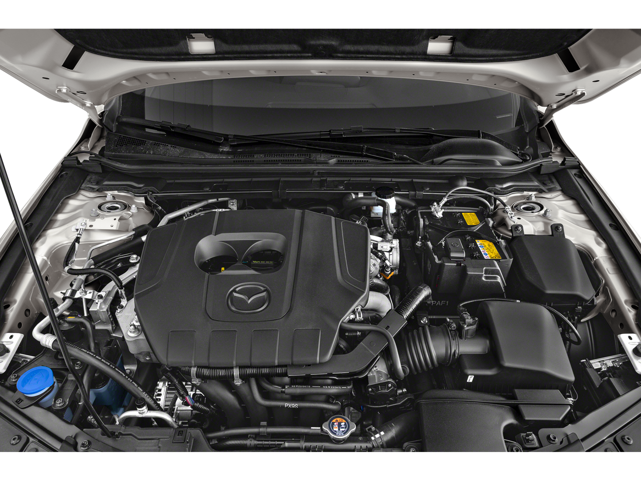 Step inside the cabin, and you'll be greeted by a wealth of advanced technology and convenience features. The MAZDA CONNECT Infotainment System, complete with Apple CarPlay and Android Auto integration, keeps you connected and entertained. Dual-zone automatic climate control, a leather-wrapped steering wheel, and a Rear-View Camera provide a refined and comfortable driving environment.