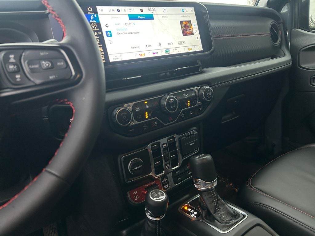 Inside, the Wrangler Rubicon X offers a premium, well-appointed cabin that combines style and functionality. The Nappa leather-trimmed seats provide exceptional comfort, while the heated steering wheel and front seats ensure you stay cozy even in the coldest conditions. The 12.3-inch touchscreen display with Uconnect 5 navigation and Apple CarPlay/Android Auto integration keeps you connected and entertained on the go.