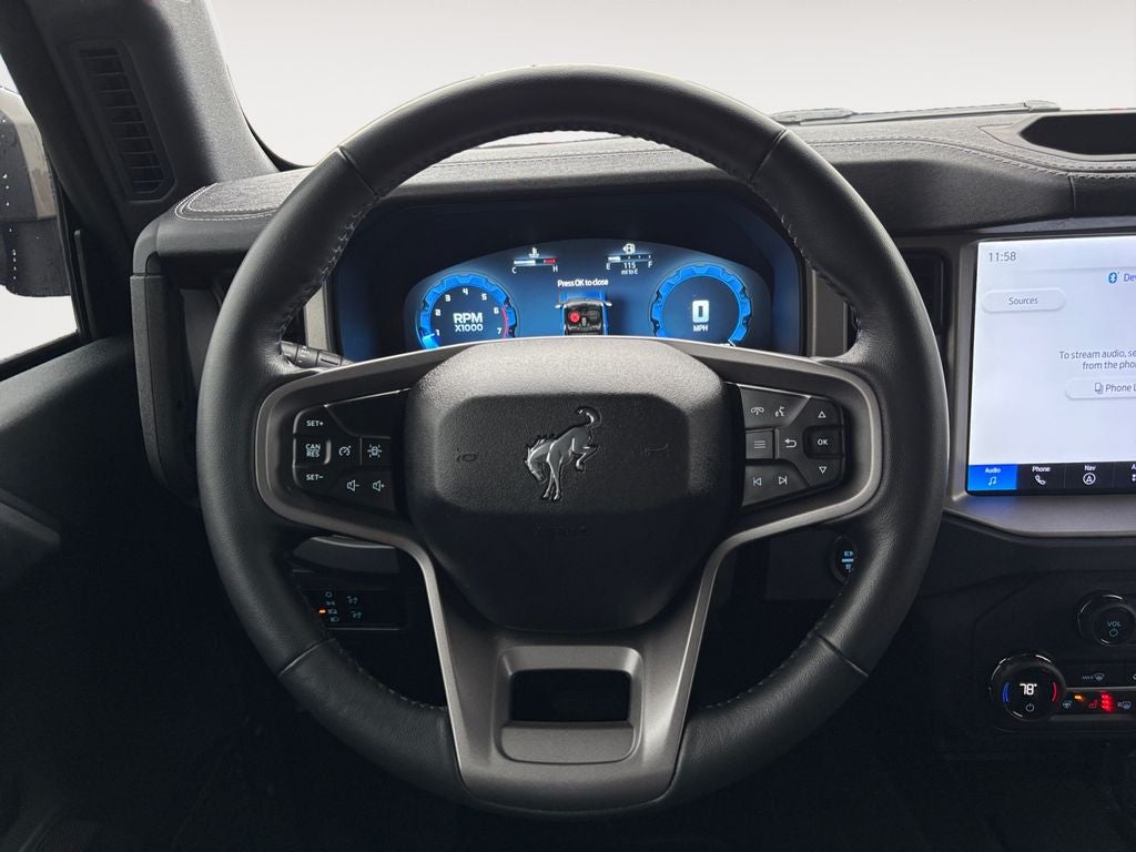 Powered by a robust 2.3L EcoBoost I-4 engine and paired with a 10-Speed Automatic transmission, this Bronco offers the perfect blend of power and efficiency, delivering an impressive 18 city/22 highway MPG. With its capable 4WD system, you'll be ready to tackle any adventure, from rugged off-road excursions to daily commutes.